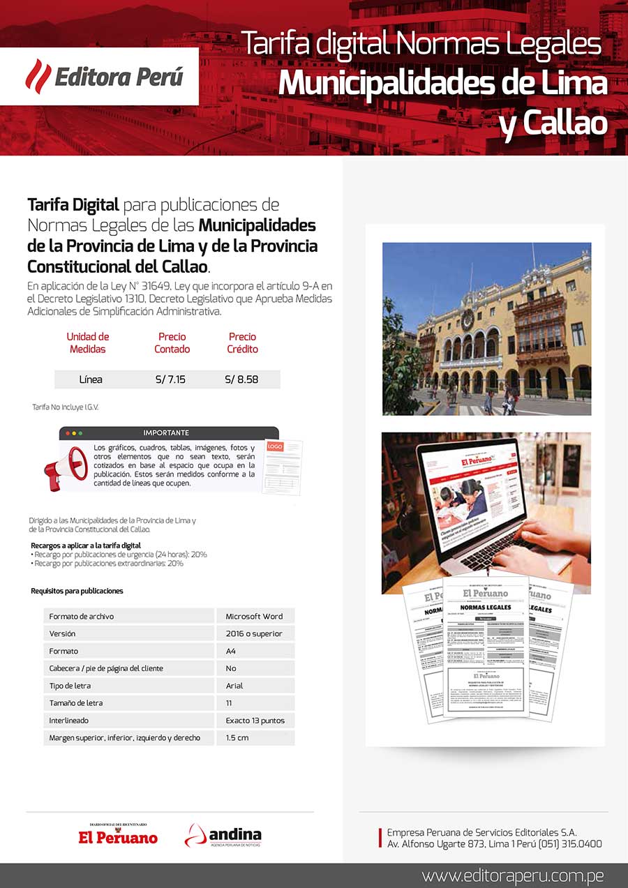 Responsable Portal Transparencia: Victor Hugo Colina Lama Responsable Entrega Informacion Transparencia: Jhony Alex Chuquipoma Facho Diseñado y desarrollado por Editora Perú |